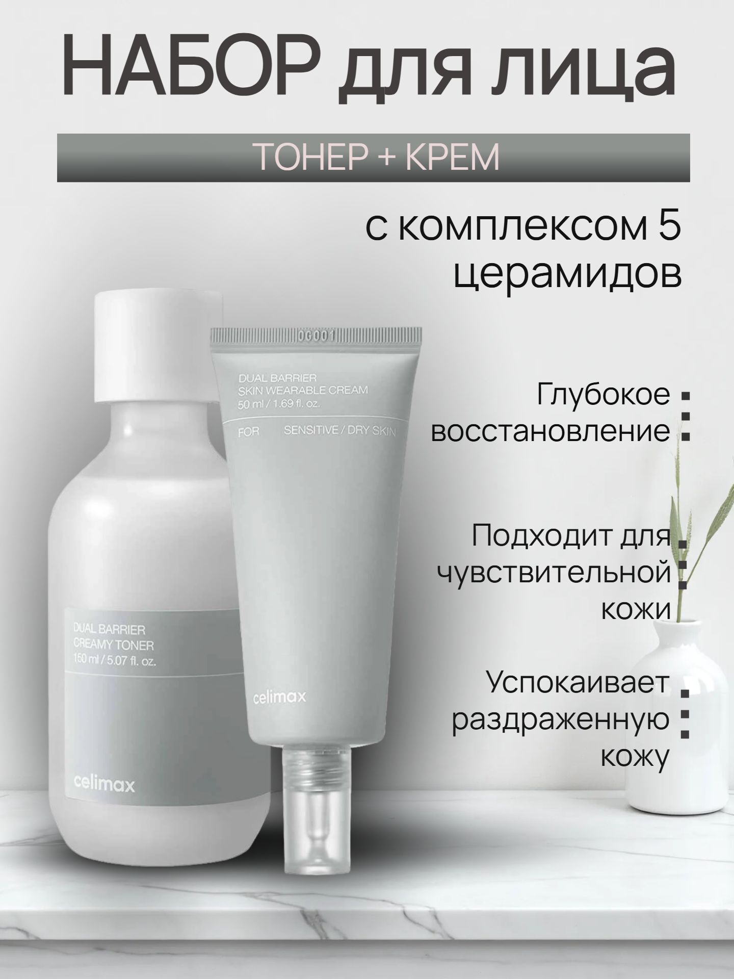Тонер Celimax Dual Barrier Creamy Toner восстанавливает сухую и тонкую кожу, спасая в холодное время года: смягчает и увлажняет, питает, повышает защитные функции, предотвращает сухость и шелушение.