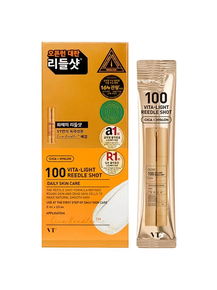 Бустер-сыворотка VT Cosmetics Vita-Light Reedle Shot 100 — это осветляющая версия легендарной сыворотки от VT с микроиглами.