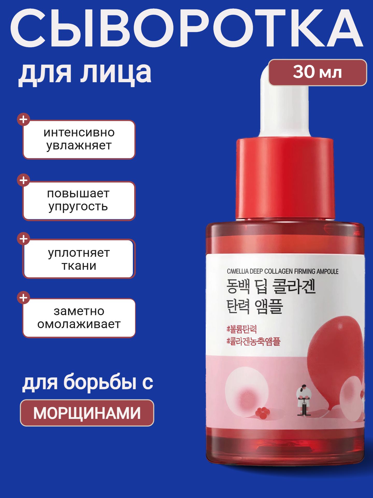 Сыворотка ампульная с экстрактом камелии ROUND LAB Camellia Deep Collagen Firming Ampoule (30мл)